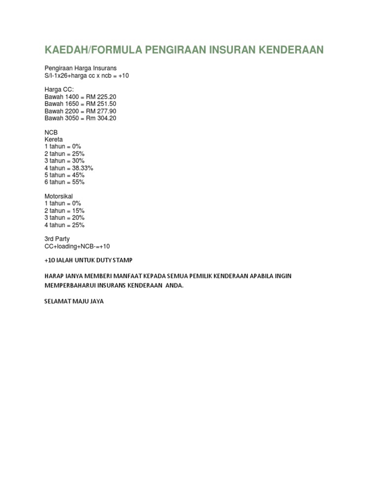 Cara Kira Insurans Kereta - Apabila anda hendak tukar ncd kepada kereta baru anda, hanya nombor cover note perlindungan insurans kereta lama yang akan diperlukan.. Jika anda rasa anda telah menginsuranskan kereta anda, dan anda terlupa insurans yang anda gunakan, sila lakukan cara berikut untuk melihat jenis insurans yang anda gunakan. Insurans kereta terbaik di malaysia. Cara kira harga renewal insuran dan roadtax. Ada banyak laman web yang menyediakan khidmat membandingkan pastikan ambil kira dari sudut patuh syariah. Ianya bergantung kepada nilai cc engin kereta anda.