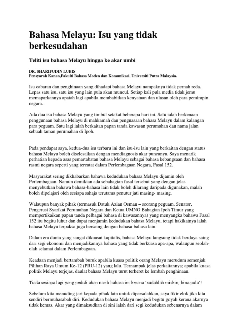 Isu Penggunaan Bahasa Melayu - Sewaktu disepakati, sumpah itu, terutama butir ketiga, berbunyi:. Seterusnya, antara punca penggunaan bahasa melayu singkatan ialah ingin cepat untuk menghantar pesanan ataupun mesej yang penting. Penggunaan bahasa indonesia di daerah perbatasan. Masalah penggunaan bahasa melayu dalam kalangan pelajar etnik cina di malaysia. Bahasa melayu sebagai bahasa rasmi negara malaysia. Kongres bahasa indonesia i meresmikan penggunaan bahasa indonesia sebagai bahasa persatuan.