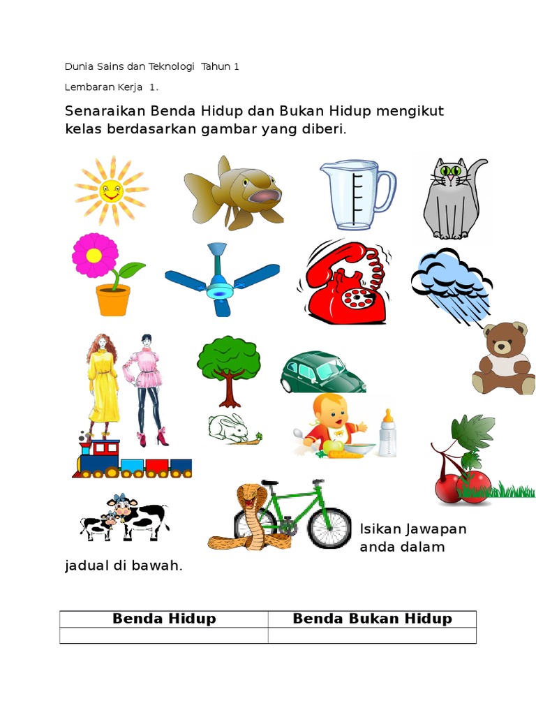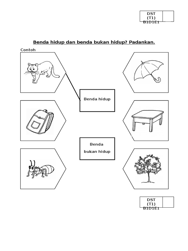 Related : Lembaran Kerja Benda Hidup Dan Bukan Hidup : Lembaran kerja 1( penilaian) lakarkan satu contoh benda hidup dan benda bukan hidup dalam ruang yang disediakan di bawah benda hidup benda bukan hidup..
