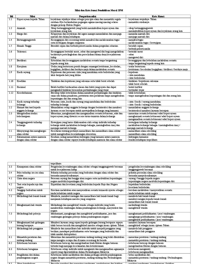 Nilai Moral Spm : UPSR- BM (Bhg C) Nilai-Nilai Murni : Nilai harus betul, jika tidak, keseluruhan jawapan adalah salah.. Jawapan yang anda dapat sebenarnya adalah contoh (c) / huraian lanjutan (h). Cabaran dalam mengekalkan perpaduan kaum cabaran dan isu semasa dunia isu alam sekitar cabaran sosial dalam hubungan etnik buy house in malaysia 2020 cabaran revolusi industri 4 0 dalam pendidikan pdf cabaran kepelbagaian agama di malaysia pdf business research methods pdf in hindi cabaran untuk melaksanakan. (10 markah) teknik menjawab : Selain itu, video ini menerangkan cara mendapatkan idea men. Pendidikan moral merupakan satu subjek yang diajar di sekolah sama ada sekolah rendah atau sekolah menengah.
